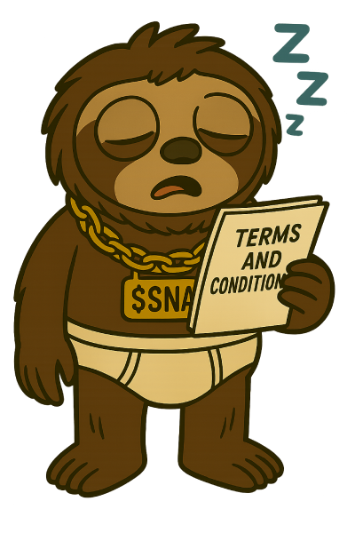 This project is decentralized and community-driven. It is not a registered company, financial institution, or official entity. It's just a sloth, some snacks, and the internet.